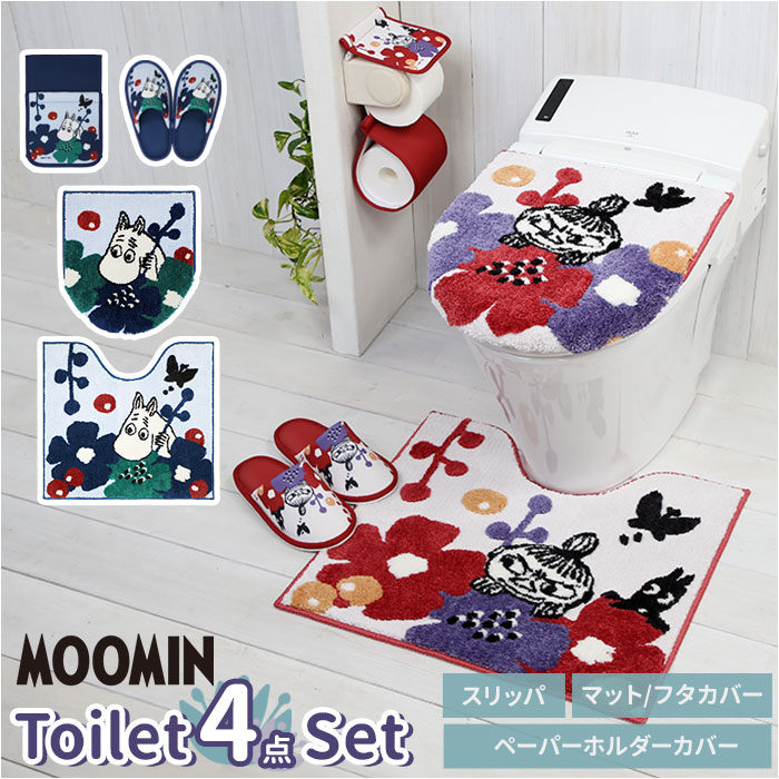 ■ムーミン トイレ グッズ 通販 トイレカバー セット 北欧 4点セット トイレマット 蓋カバー スリッパ ペーパーホルダー O型 U型 洗浄暖房