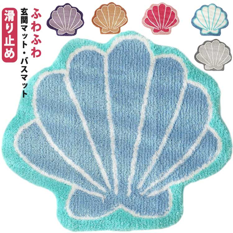 ■玄関マット トイレマット インテリアマット バスマット ふわふわ おしゃれ 洗える インテリアマット 貝 人魚姫 新生活 お風呂マット かわ