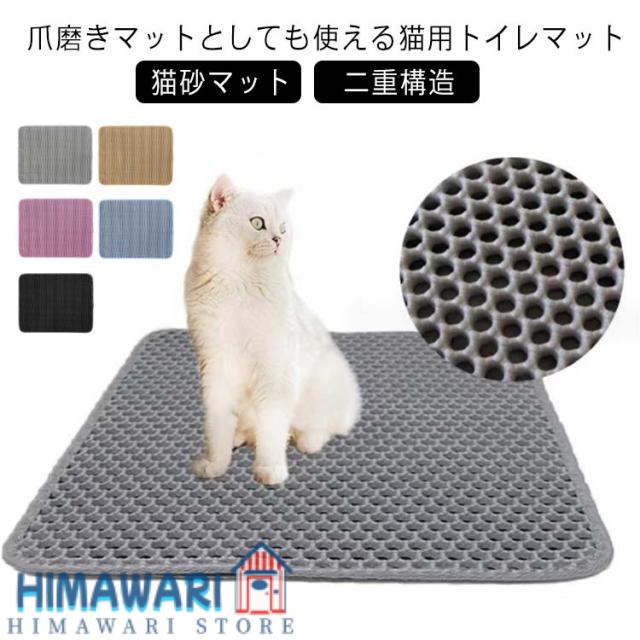 猫砂マット 二重構造 猫砂飛び散り防止 猫砂 マット 45×60cm 猫用 トイレマット 猫砂キャッチャー 砂取りマット 大きめ 大きく 猫 トイレ マット 丈夫 引っ掻きに強い 大きいサイズ 猫トイレ 用品 ペット 滑り止めマット 水洗い可 片づけ 清潔 簡単 全5色
