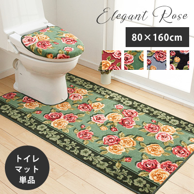 ■トイレマット トイレタリー エレガントローズ/80×160cm マット おしゃれ 滑りにくい 日本製 花柄 バラ 薔薇 三愛 【メーカー直送】