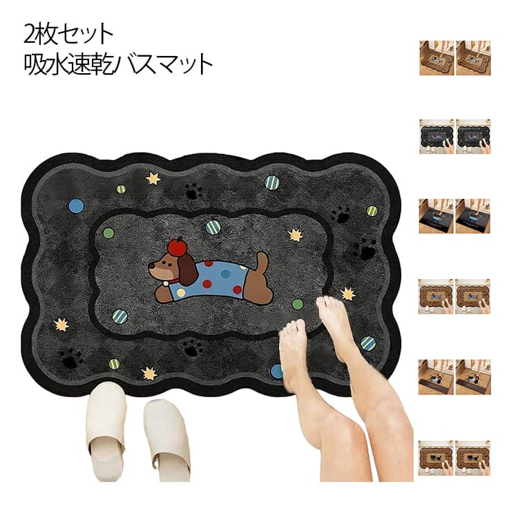 ■カートゥーン 吸水 2枚セット 家庭用 トイレマット バスマット 速乾 防滑 バスマット かわいい 室内用 耐汚れ 洗面所 厚手 快適 足元 柔