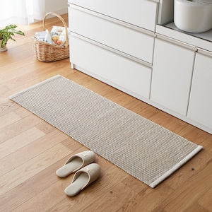 ーデザイン・仕様ー織りで表現したさり気ないへリンボーン柄がスタイリッシュすっきりとした見た目の薄手タイプインテリアに合わせやすいカラー展開ー素材・機能ー織り生地仕様で毛足がないからゴミもからまらず気軽に洗えて乾きやすい薄手なので下段の引き出しも引っ掛からずさっと引き出せる裏側には滑り止め付き