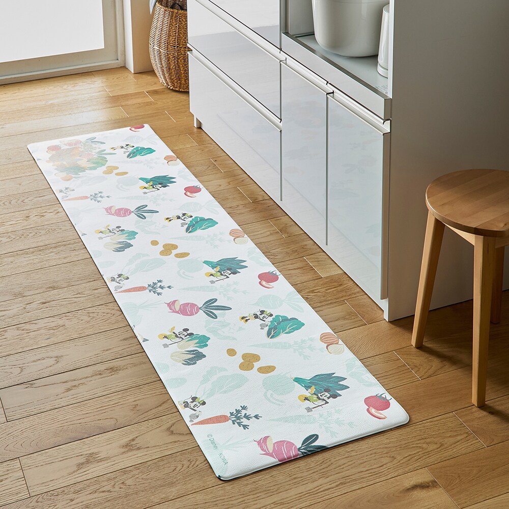汚れてもサッと拭けて、お手入れしやすいキッチンマットもっちりとした踏み心地もGOODさまざまな野菜をモチーフに使った、キッチンらしい絵柄が楽しい野菜に水をやったり収穫したりしているミッキーマウスやミニーマウスがかわいいシンク下に敷くだけで、キッチンが明るい雰囲気に