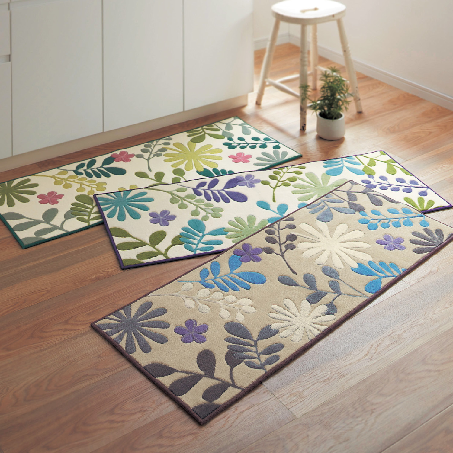 ■【ベルメゾン】抗菌防臭加工キッチンマット 【選べる5サイズ 華やかなボタニカル柄】