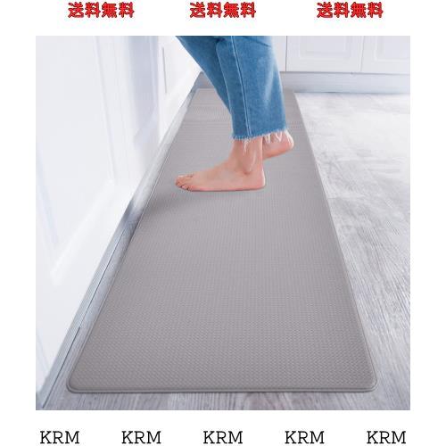 ■Baibu Home キッチンマット 60×240cm PVC 厚さ8mm 洗濯いらず 低反発クッション ずれない 台所 マット 防汚 拭ける グレー