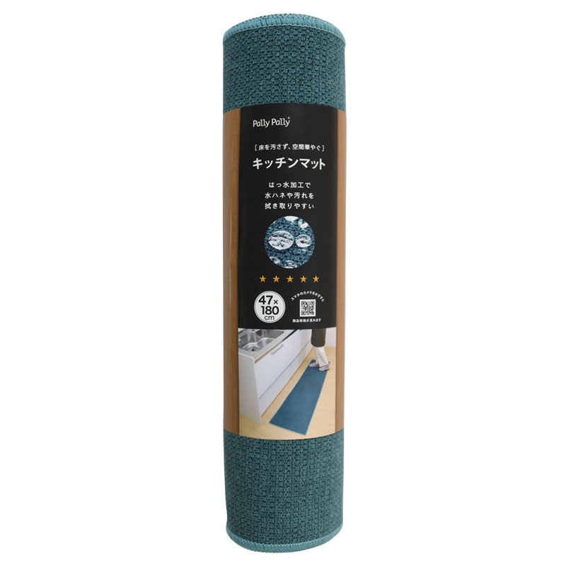 ■キッチンマット ターコイズ 47×180cm パリーパリー K74148 [薄型マット 滑り止め キッチン用品 足元マット サンベルム]