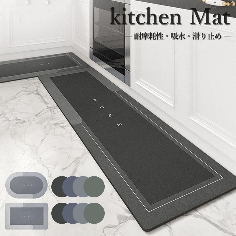 キッチンマット 台所 矩形 楕円形 厚手 玄関マット クッションフロア マット 洗える 吸水 速乾 拭ける 滑り止め カーペット ロング 北欧