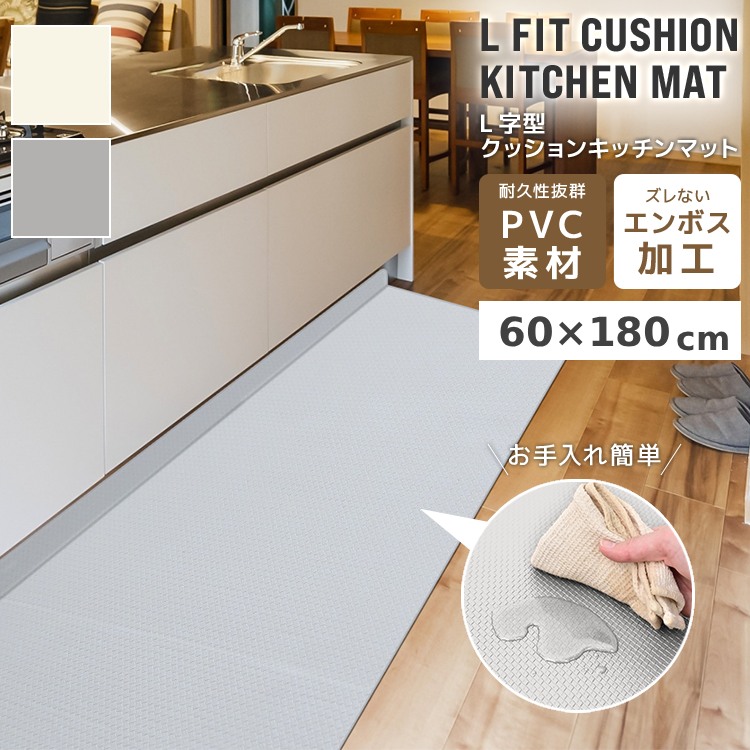 ■キッチンマット 拭ける 180 L型 60×180 厚手 8mm L型 折り目つき 滑らない 低反発 クッション マット コーナー L字折り曲げ 隙間 カバー
