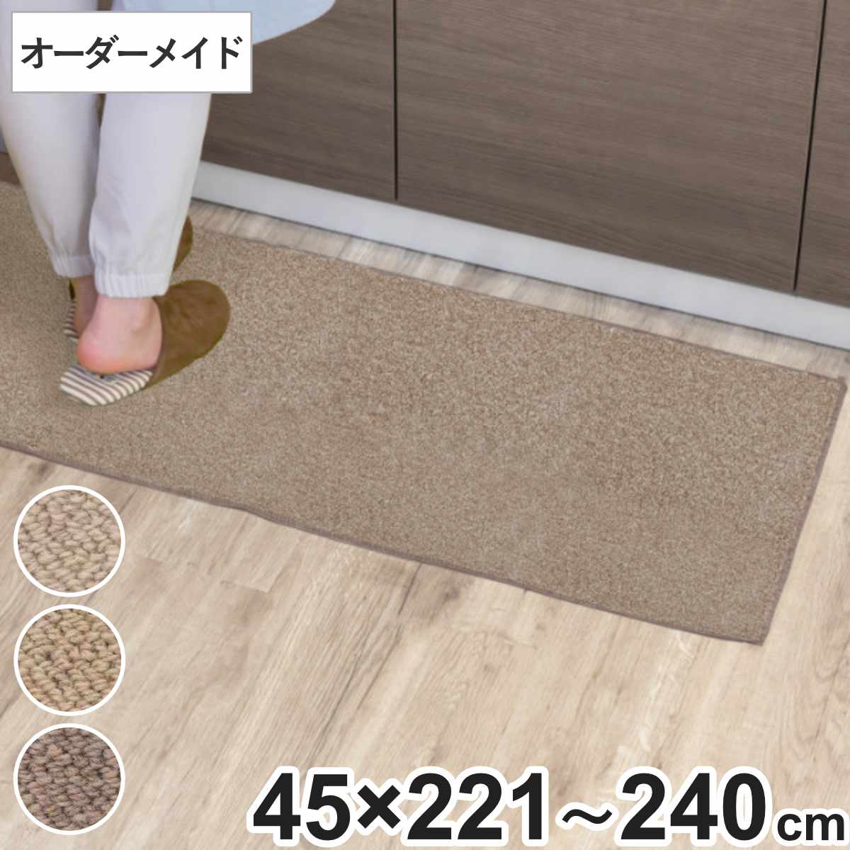 ■キッチンマット 1cm単位 オーダー 45×221〜240cm バーバークラフト オーバーロック加工 ( 日本製 キッチン マット サイズオーダー 45cm