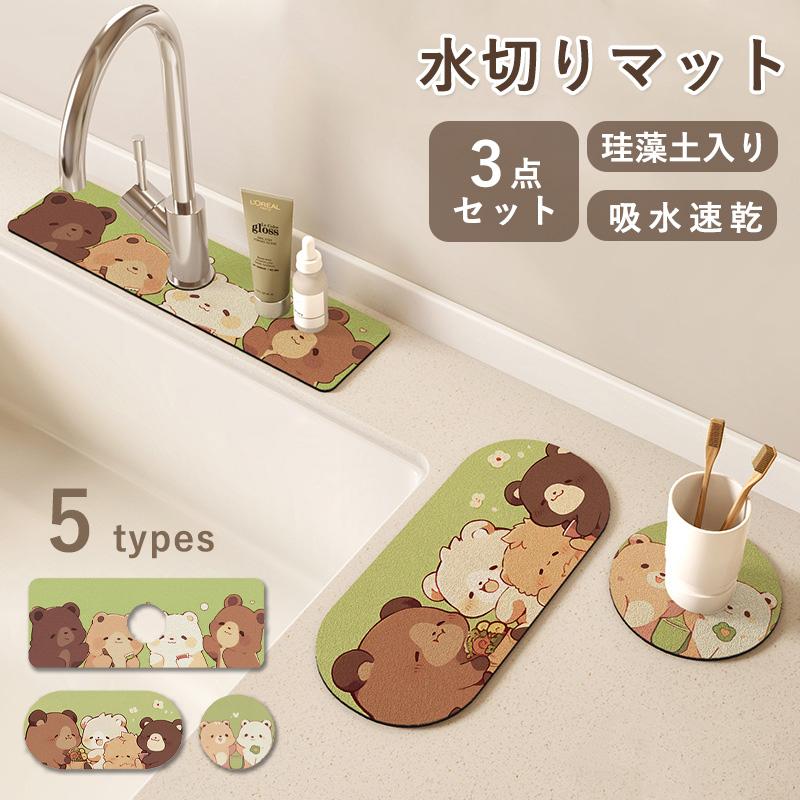 3点セット 水切りマット 蛇口マット 珪藻土 蛇口乾燥マット 洗面台 蛇口乾燥 ソフト 珪藻土マット キッチンマット 水栓マット 乾燥 速乾吸水 抗菌 割れない