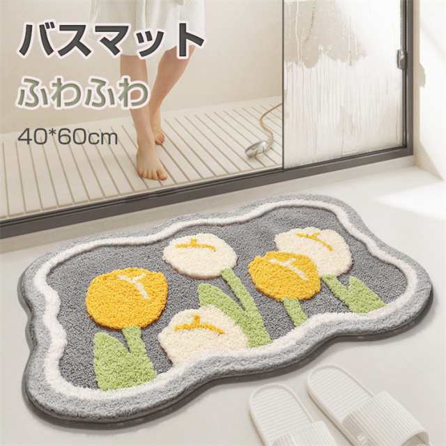 バスマット マット 40×60cm 玄関マット キッチンマット ふわふわ 水洗いできる 泥落とし 北欧風 室内 滑らない 速乾 洗える 吸水 リビング 足拭き お風呂 水切り 柔らか おしゃれ 可愛い
