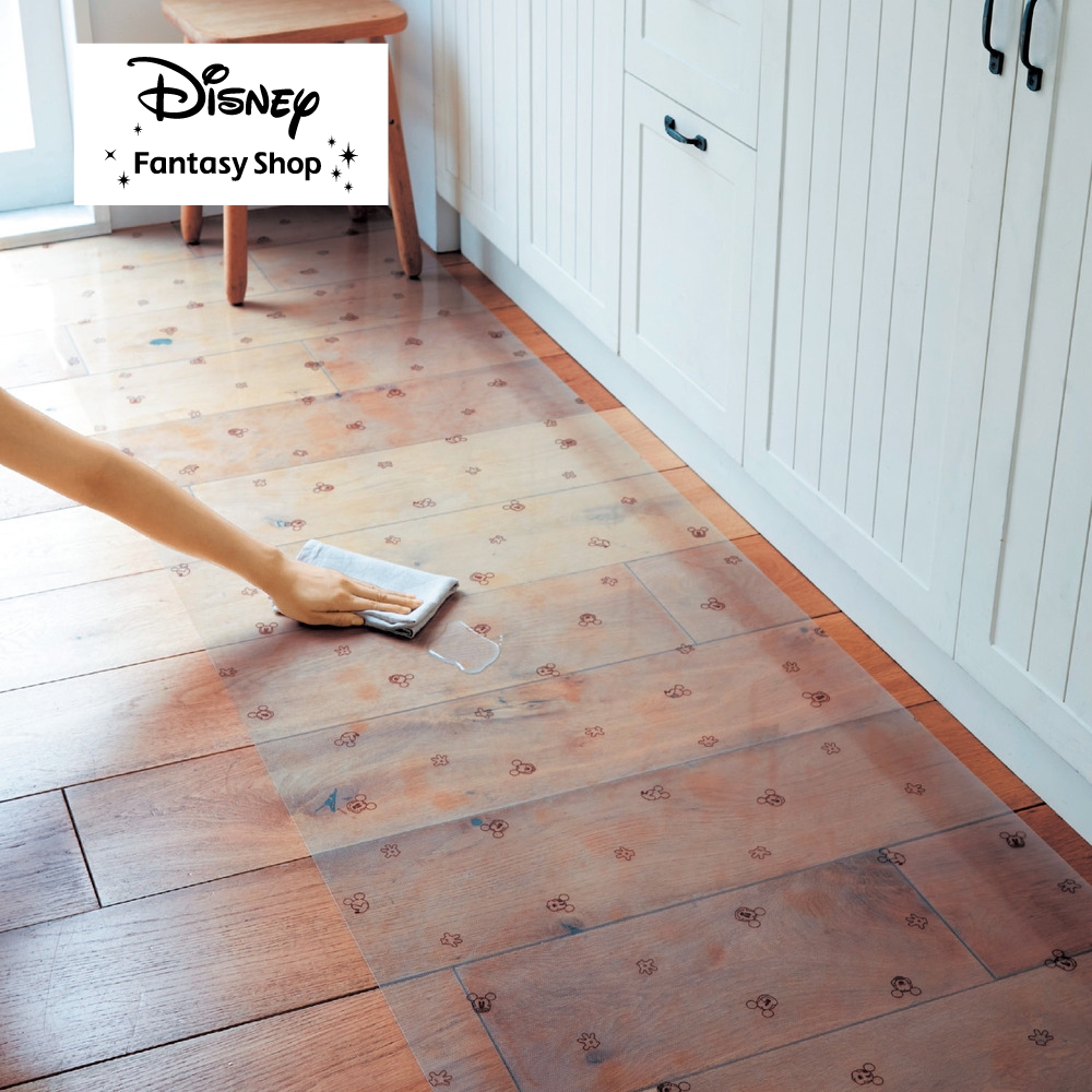インテリアの雰囲気を損なわない透明キッチンマット。キッチンの水や油はねもサッと拭くだけでお手入れできます。─デザイン・スタイリング─・床材が透けて見えるので空間にしっくりなじむ・ミッキーマウスのいろんな表情が可愛いデザイン─機能─・汚れや水滴をサッと拭くだけでお手入れ簡単・キズや衝撃から床をガード・剥離シートを剥がすと粘着性があり床にぴたっと貼りつく・好きなサイズにフリーカットOK─素材─・ツヤ消しの塩化ビニル素材
