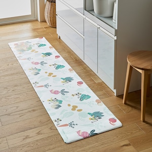 汚れてもサッと拭けて、お手入れしやすいキッチンマットもっちりとした踏み心地もGOODさまざまな野菜をモチーフに使った、キッチンらしい絵柄が楽しい野菜に水をやったり収穫したりしているミッキーマウスやミニーマウスがかわいいシンク下に敷くだけで、キッチンが明るい雰囲気に