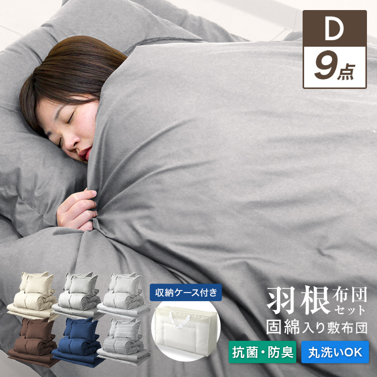 ■羽根布団 9点セット ダブル 洗える 抗菌 防臭 防カビ 洗濯可 布団 布団セット ダブル ふとんセット 羽根布団セット 羽根掛け布団 敷布団