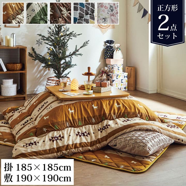 ■こたつ布団 正方形 こたつ布団セット正方形 185×185cm こたつ布団セット こたつ掛敷 2点セット 「ココットリーフモロコマオ」 モダン こ