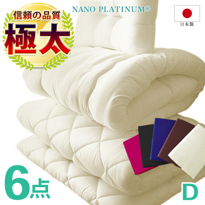 ■布団セット ダブル 6点セット 日本製 極太 極厚 敷布団 5層構造 敷布団 高反発 ボリュームアップ 掛け布団 枕 布団カバー3点 洗える 防