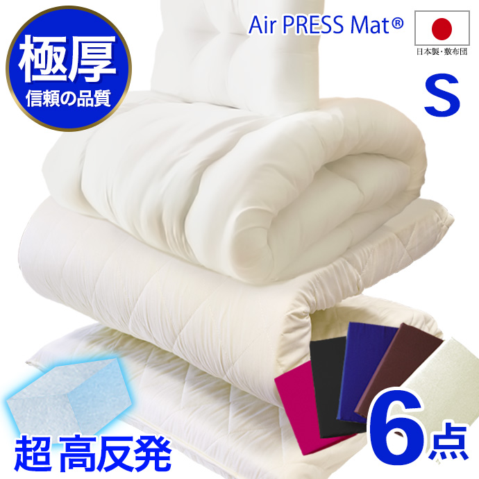 ◆6点セット 高反発3重構造・敷布団:S がわ約100×200(製品サイズ約95×195×約7cm)製品許容範囲+3%-5%・掛布団:S 150×210cm・まくら:43×63cm・3点セットカバーSL(キルティング製品許容範囲±5%) ・枕は掛け布団の中に一緒に梱包されてます・・敷布団は国産・日本製です。/ 掛布団・枕・カバーは日本企画/中国生産となります。ご了承願います。◆掛け布団・敷き布団の出荷場所は異なります。別梱包にて別々の出荷場所になりますので御了承願います。