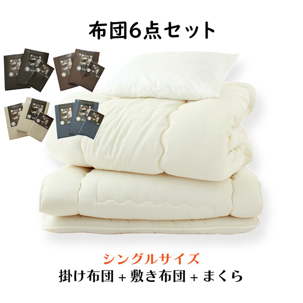 ■布団セット 6点セット シングル 掛け布団 敷き布団 枕 掛布団カバー 敷布団カバー 枕カバー ポイント消化