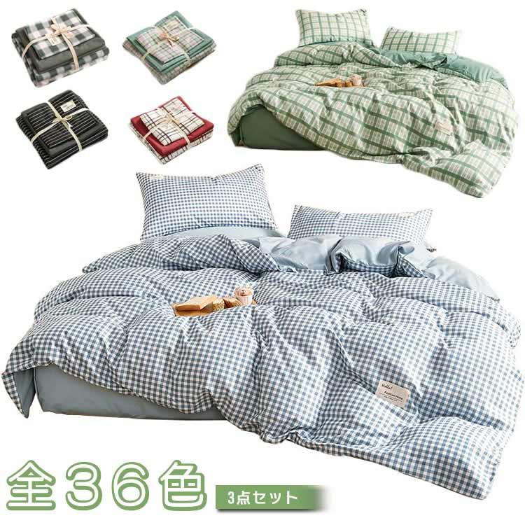 シーツカバー 3点セット 布団カバー チェック柄 シングル 布団セット 掛け布団カバー 綿 かわいい 寝具カバーセット 全36色 安心 敷布団カバー
