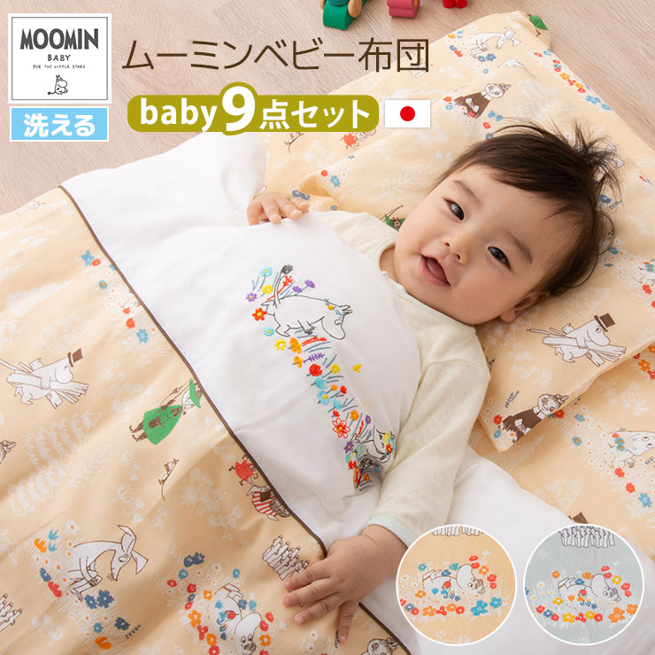 ■ベビー 布団セット 9点 日本製 カバー ムーミン 保育園 幼稚園 洗える お昼寝 ねんね オールシーズン 洗える布団 来客用 プレゼント