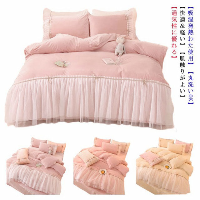 ■あったか 布団セット シングル 3点 寝具カバーセット 掛け布団カバー 姫系 フリル 可愛い リボン フリース マイクロファイバー フランネ