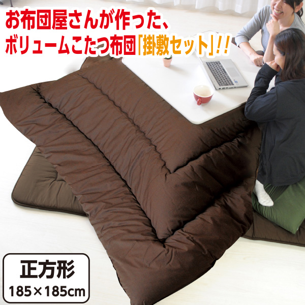 【生産国】掛け:日本(側:中国 最終加工:日本) 敷き:中国【材質】掛け:表地…綿100%(しじら)裏地…ポリエステル100%中材…ポリエステル100% 3.4kg敷き:表地…綿100%(しじら)裏地…不織布中材…ポリエステル0.7kg+ウレタンフォーム40℃以下の水温で弱い手洗いで洗濯してください。(洗濯機は使用できません。)干し方:日陰のつり干しがよい。ロングセラーのしじら織のこたつ布団です。べとつかず肌触りの良いしじら織で和室にも洋室にも合うデザインに仕上げました。部分暖房のこたつは電気代もお得です。80〜90×180cmのこたつ台に適応