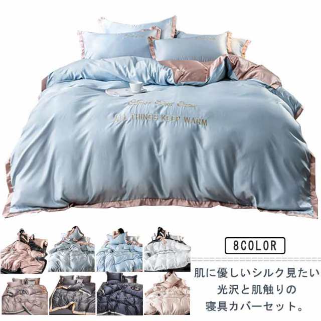 ダブル 寝具カバーセット 布団カバー 寝具カバーセット 布団セット ふとんカバー セミダブル 敷布団カバー 掛け布団カバー ボックスシーツ フラットシーツ 4点セット 涼しい 春夏 ツルツル 肌触り良い 寝具 北欧