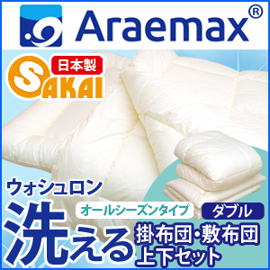 ■ウォシュロン 洗えるオールシーズン掛け布団とホコリがたちにくい清潔敷布団 掛・敷 布団セット ダブル サイズ