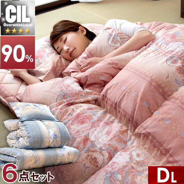 羽毛布団セット ダブルロング 6点 セット 日本製 CILシルバーラベル 羽毛布団 抗菌 消臭 ホワイトダウン 90% 枕 敷き布団 敷布団 布団セット 国産 組布団 【商品番号:10119079】