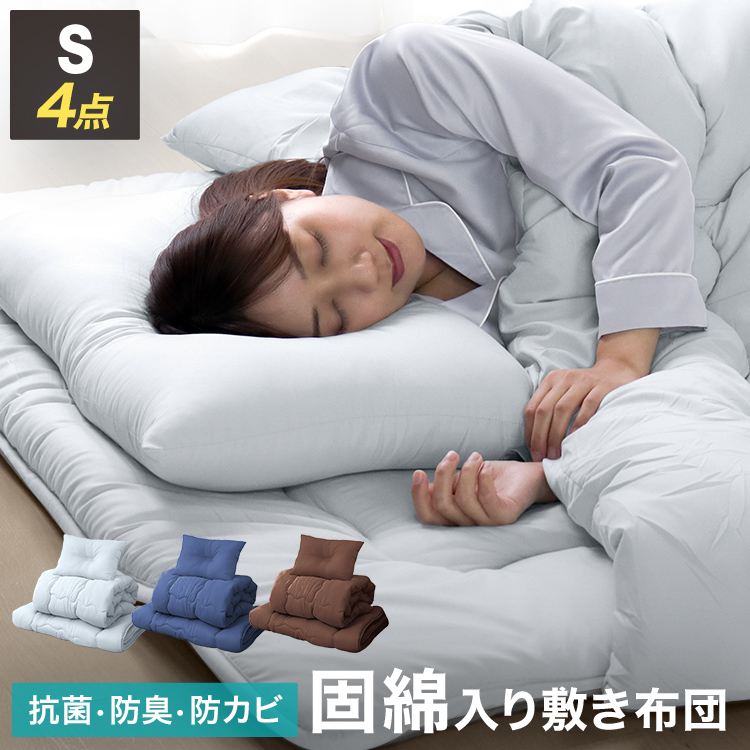 ■布団セット シングル 4点セット 布団 寝具 固綿 綿 洗える ほこりができにくい 布団 抗菌 防臭 認定工場生産 布団 シングル ふとんセット
