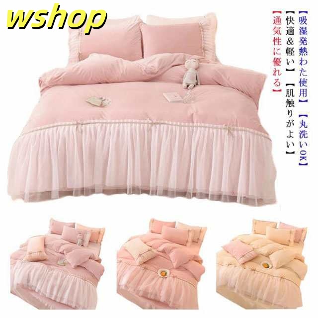 ■秋の新作特集 品質安心 リボン 姫系 】あったか 新登場 無地 シングル フリル 布団セット フランネル 【wshop マイクロファイバー SNS話