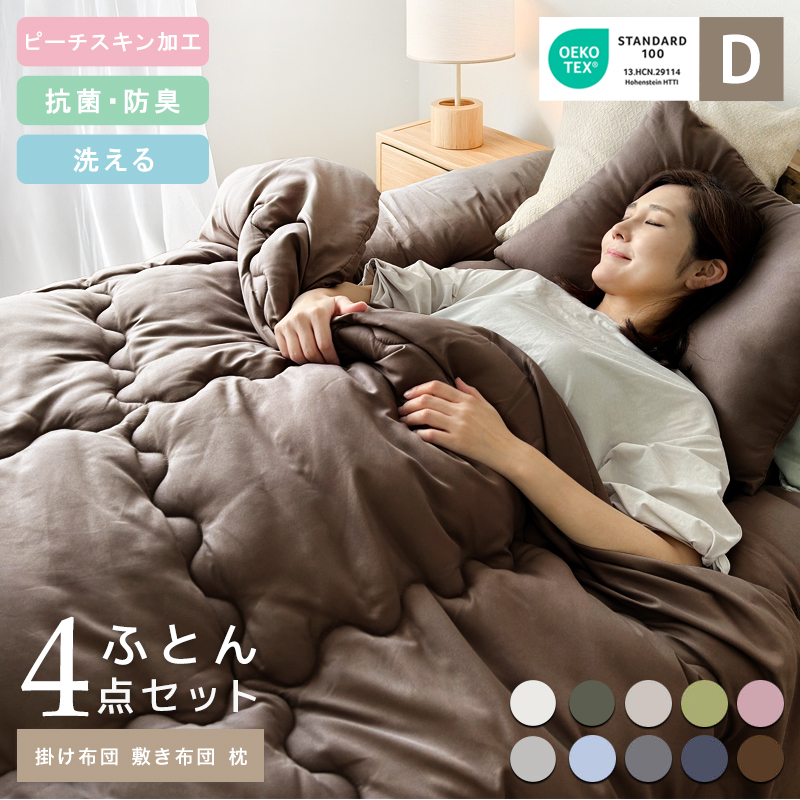 ■ファミリー敷布団 敷パッド セット 4人用 250×200cm 洗える カバー付き 布団セット 帝人 抗菌防臭 防ダニ ピーチスキン 来客用