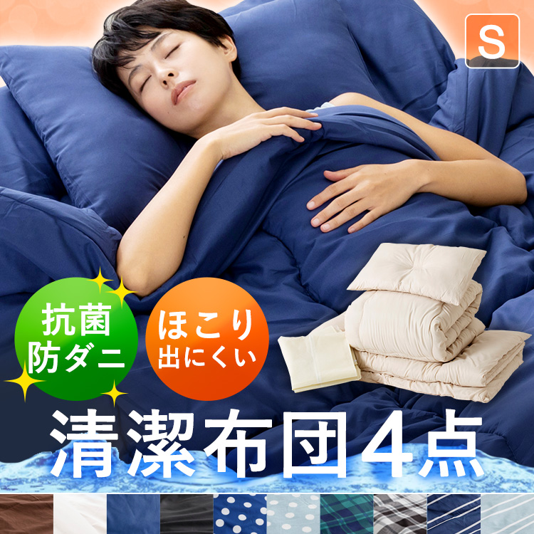 ■ポリエステル綿布団 4点セット S SPCFT4-S 全10色 布団セット 掛け布団 敷布団 枕 収納袋 シングル 来客用 洗える 一人暮らし 新生活