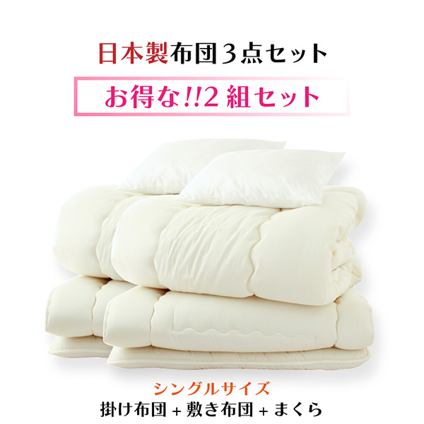 ■【2組セット】 布団セット 3点セット シングル ロング 掛け布団 敷き布団 枕 日本製 新生活応援 ポイント消化