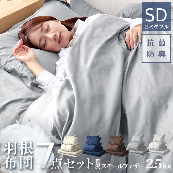 ■布団 寝具 7点セット セミダブル 布団セット 贅沢 スモールフェザー 100% 洗える 羽根布団 抗菌 防臭 認定工場生産 防カビ 布団 シングル