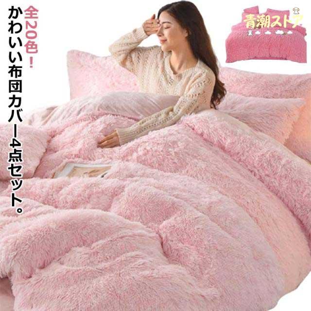布団カバーセット 4点セット ダブル シングル あったか ふわふわ もこもこ 毛足の長いシャギー 寝具カバー セット 布団セット ふとんカバー 掛け布団カバー ボックスシーツ 枕カバー シンプル 暖かい 姫系 おしゃれ かわいい 厚手 肌に優しい 洗える 保温 防寒 冬用