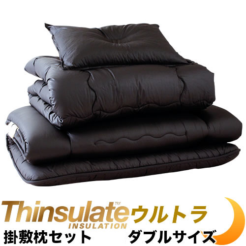 ■布団セット 4点セット シンサレート ウルトラ ダブル マイティートップ 抗菌綿 防ダニ生地 掛け布団 敷き布団 枕×2 新生活応援 ポイント