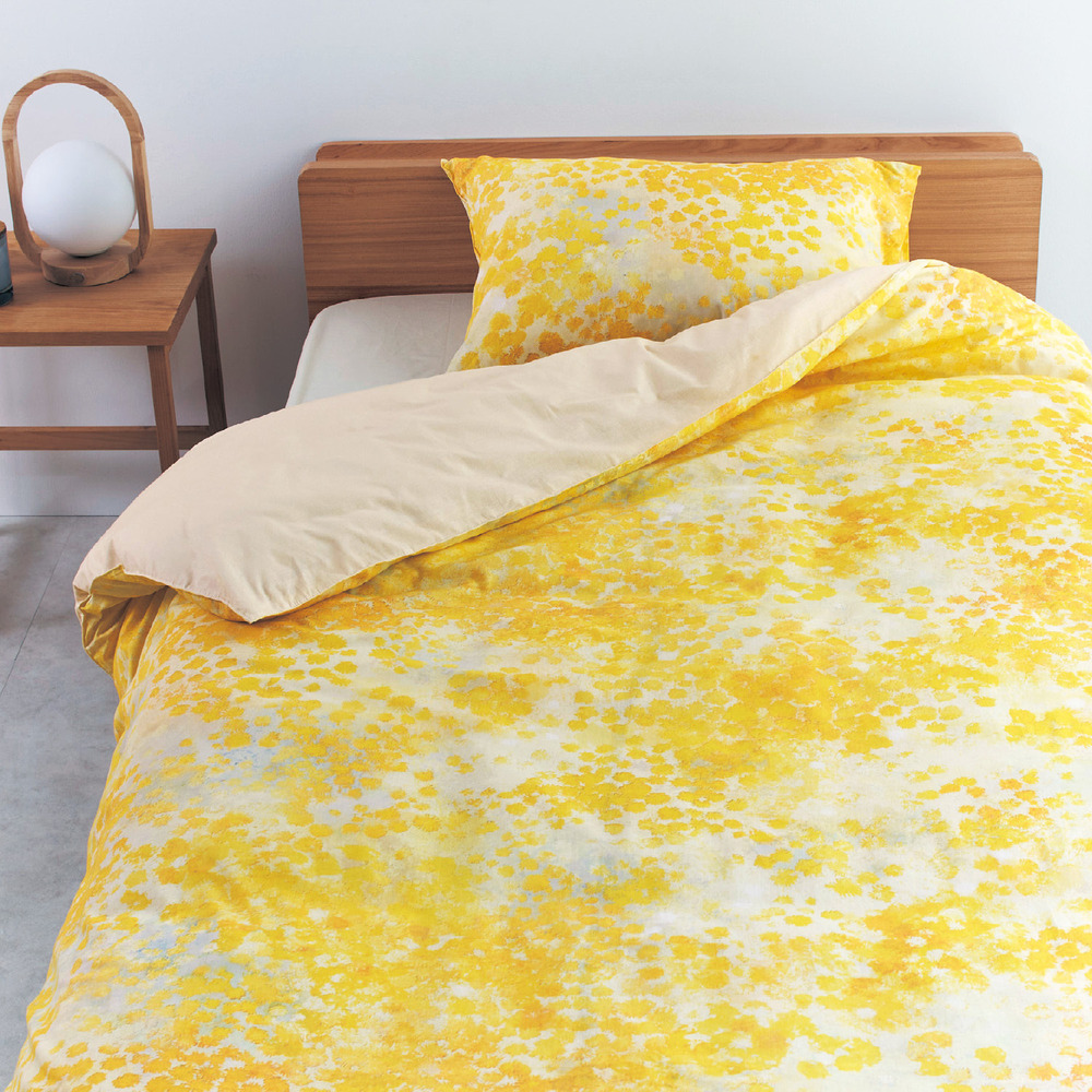 ーデザイン・スタイリングーテキスタイルデザイナー星佐和子さんのアートを布団カバーに星佐和子さんがフィンランドで感じる春を表現まるで一枚の絵を広げたような美しさまとめてコーディネートできる布団カバー3点セットですイエローは降りそそぐ春の光をイメージグリーンはシャクの花が咲く草原をイメージ掛け布団カバーと枕カバー、シーツの3点セットセットのボックスシーツ、敷布団カバーはアイボリーの無地ですセットの枕カバーは合わせ式で、両面ともに柄入りですー素材ーサラッとした綿100%の生地を使用オールシーズン気持ちよく使えますインクジェットプリントで繊細なタッチや陰影までも美しく表現