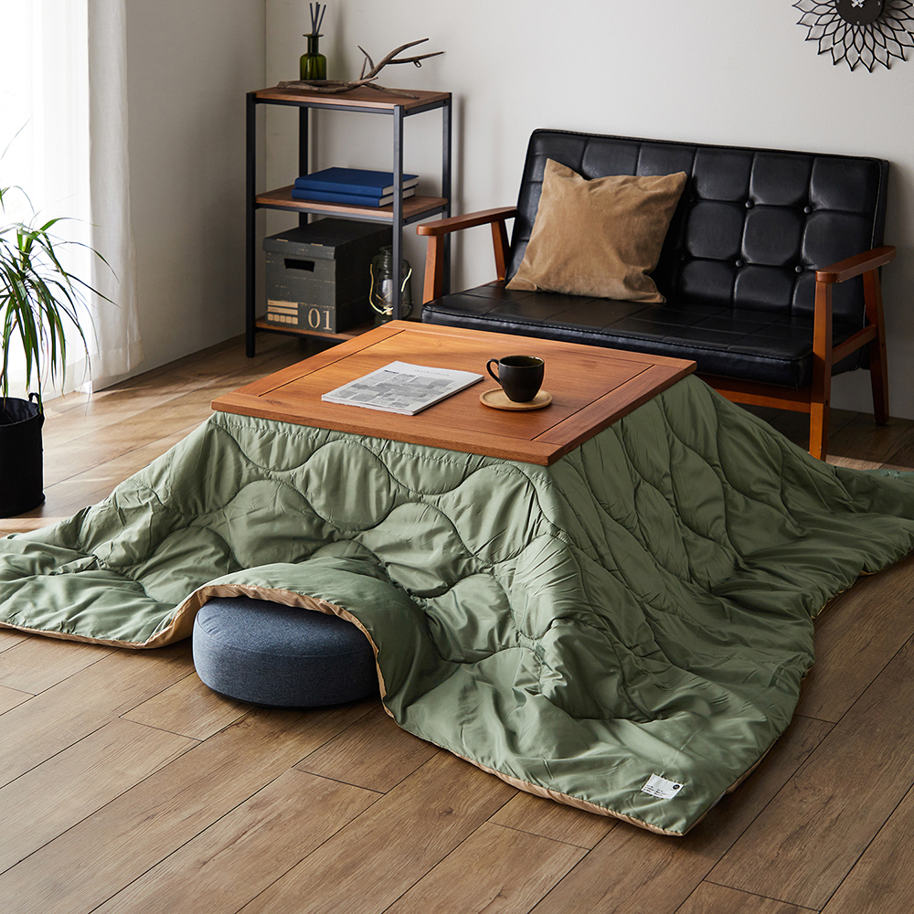[こたつテーブル]レトロな表情を見せるアカシア材を贅沢に使用オイル塗装仕上げで木の風合い感じる素敵な佇まいに仕上げています正方形は75×75cmの4面使えるちょうど良いサイズ感コンパクトでも対面使用が出来る正方形の定番サイズ長方形は105×60cmの奥行がコンパクトなサイズベーシックな石英管ヒーターを使用ヒーター横のつまみを回すことで温度の強弱が切り替えできます手元のスイッチでヒーターのON/OFFの操作が可能直線を活かしたシンプルなラインが天然木の優しい風合いでやわらかな印象にデザインされています[こたつ布団]セットで購入できるこたつ布団は軽くて暖かペットの毛が付きにくい毛足がなくさらりとした質感リバーシブルなのでお部屋のインテリアに合わせてカラーを選べます収納袋付きで、使わない時もコンパクトに保管できます軽くて持ち運びやすいので、キャンプなどのアウトドアに活躍厚み約2cmですっきり使いやすい薄掛けタイプ