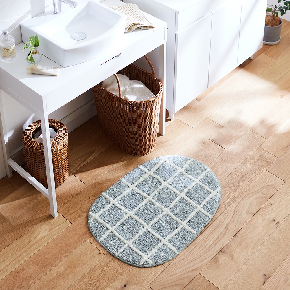 水回りの床が濡れるのを防ぎたい、キッチンマットを置かないご家庭に最適。「吸水機能」と「かわいいデザイン」を両立したコンパクトマットで、水回りをおしゃれに彩ります。ー商品特長ー吸水性に優れた素材を使用し、水回りの床の濡れやべたつきを防ぎますふわふわのパイルで、素足で踏んでも気持ちの良い踏み心地洗濯機で丸洗いOKなので、汚れても手軽に清潔を保てます毛足の長さでデザインを表現し、おしゃれなアクセントにコンパクトなサイズ感で、洗濯や持ち運びがしやすい床を守りながら、インテリアの景観を崩したくない方におすすめどんなインテリアにも合わせやすいシンプルなチェック柄チェック柄はきれいに整えなくても気になりにくい変形デザイン爽やかで可愛いデザインのクラウド柄クラウド柄は飛び出した異形がおしゃれなデザインーおすすめの使い方ーキッチン:シンク前や食洗機まわりなど、水が飛びやすい場所にポイントで敷けます洗面所:洗面台の足元に敷き、飛び散った水滴を吸水トイレ:トイレの足元に敷くことで、吸水とインテリアのアクセントを兼ねます脱衣所:バスマット使いなど、水気が気になる場所に置いて使えます