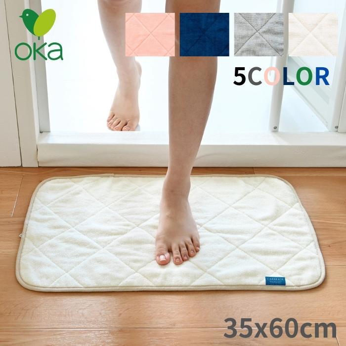 オカ(OKA)カララカバスマット35cm×60cm足ふき吸水速乾抗菌防臭乾燥機OKタオル地洗える柔らかい小さめグレーふわふわふわもこふかふか乾度良好抗菌丸洗い無地乾きがとにかく早い!毎日のお洗濯が楽ちん!タオルのふりしてますが、実はすごいバスマットです。CARARACAは乾度良好の糸を使用しているから乾くのが早く、洗濯時には脱水しただけでも綿のバスマットとは乾き具合が全く違います。また、両面パイル生地を二枚重ねにしているから間にパイルと空気の層ができ、ふわっとした足ざわりになっています。二枚重ねにして縫製することにより、乾燥機にも耐えられるように生地のよれを防ぎ丈夫なつくりになりました。糸に抗菌防臭加工をしているので、マット上の菌の増殖を抑制しいやなニオイも防ぎます。パッケージは清潔感を重視し、ギフトにも最適です。【仕様】・製品重量:180g・商品サイズ:600×350×10mm・材質:アクリル100% (特殊吸水素材) 抗菌防臭加工・生産国:中国 ・カラー:グレー、ピンク、ネイビー、グリーン、アイボ