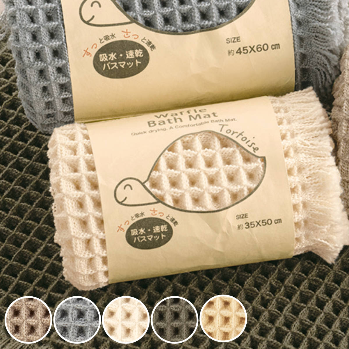 ■バスマット トータス2 35×50cm ( お風呂マット 足拭きマット 吸水 速乾 ワッフル リバーシブル 洗える 浴室マット バス マット 35×50