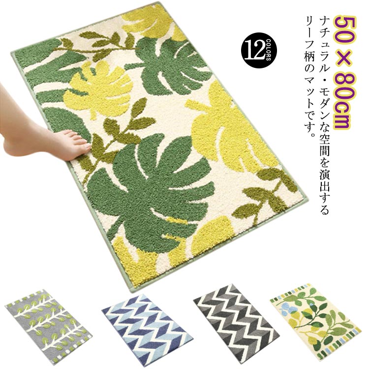 ■マット バスマット 洗面マット 足ふきマット 玄関マット 50×80cm 吸水 速乾 滑り止め加工 洗濯機で洗える ウォッシャブル リーフ柄 洗面
