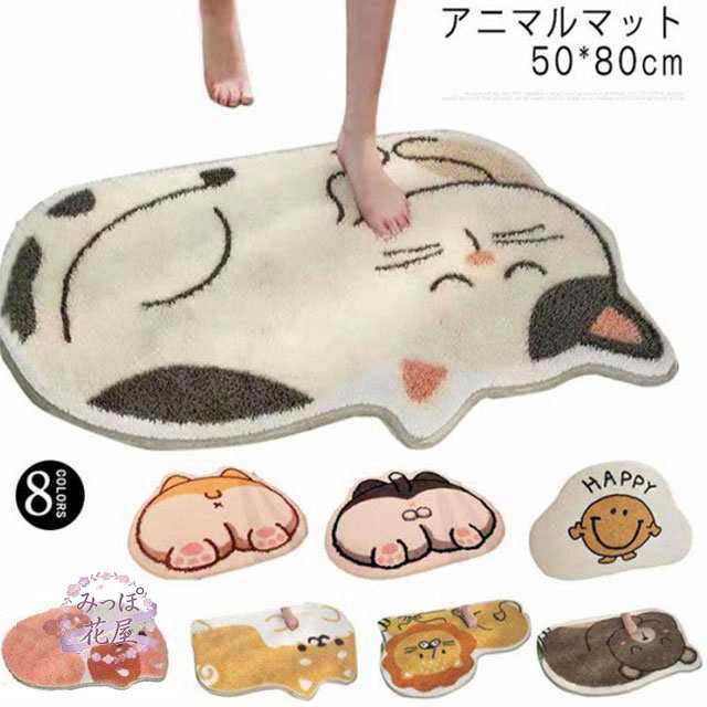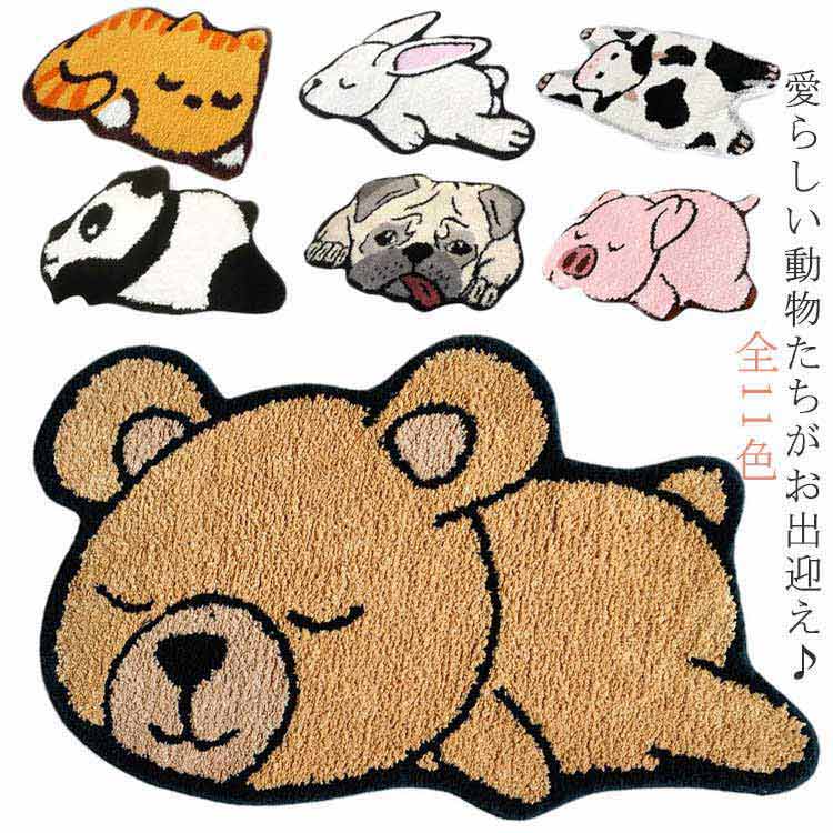 ■玄関マット 50×80cm 室内 屋内 ラグマット アニマル 動物 エントランス バスマット 猫 パンダ 柴犬 熊 子供部屋 可愛い インテリア 洗え