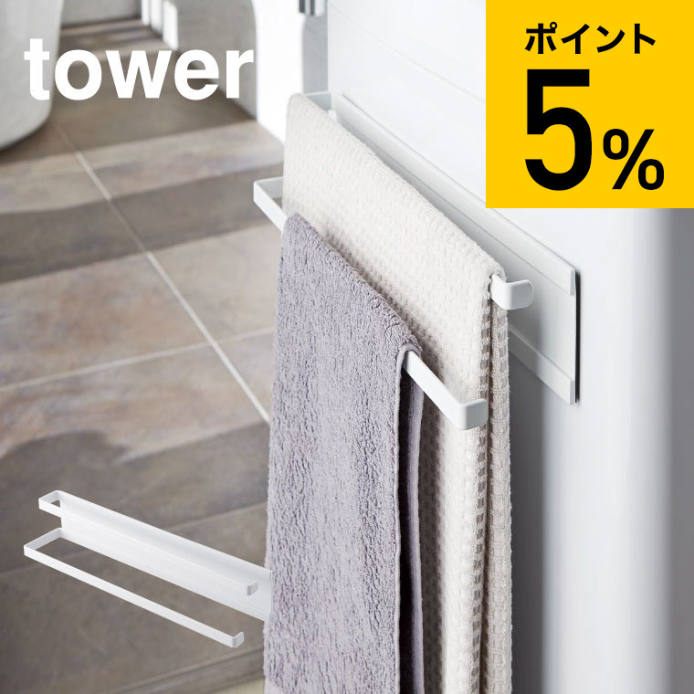 ■tower 山崎実業 送料無料 洗濯機横マグネットタオルハンガー2段 タワー ホワイト タオル掛け フェイスタオル バスタオル バスマット ハ