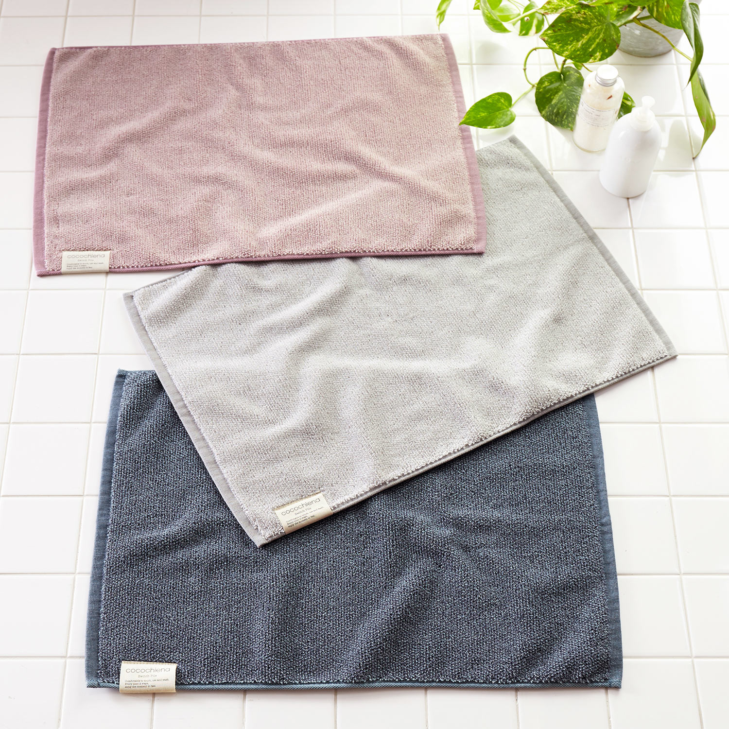 洗うほどにふっくらとした足触りが楽しめるタオルバスマット撚り方向の違う2種類のパイルが、洗濯を重ねるほど互いに反発して立ち上がりますパイル部分はやわらかな綿素材肌に直接触れない部分に高吸水素材のマイクロファイバーを使用し、水気をしっかり吸い取ります抗菌防臭加工をほどこしました