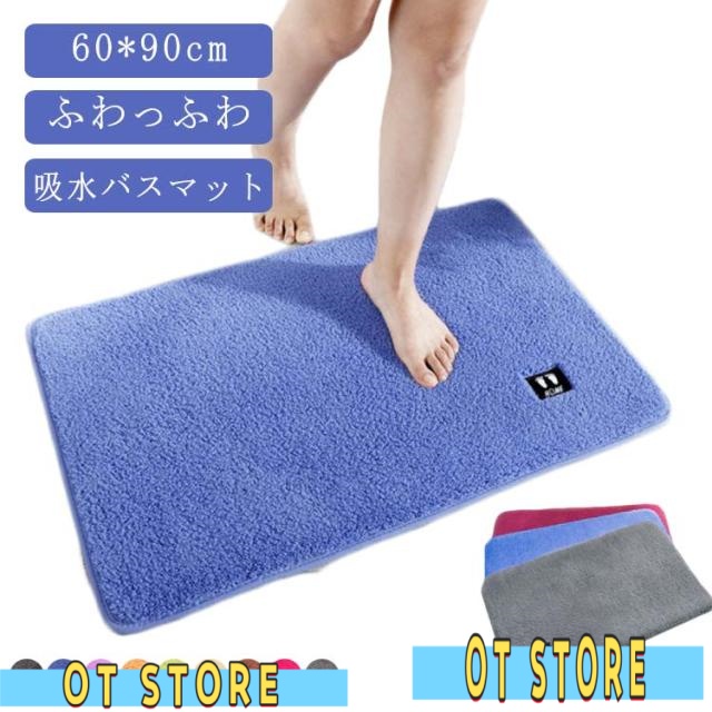 バスマット 60x90cm マイクロファイバー バスマット タオル地 大判 吸水 足拭きマット 滑り止め 抗菌 足ふきマット お風呂マット 北欧 丸洗い可 洗える 衛生的 風呂 浴室 玄関マット トイレマット