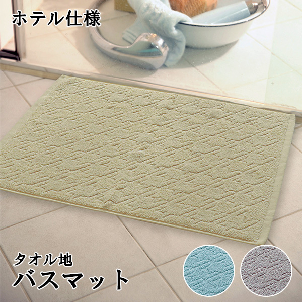 ホテル仕様のタオル地バスマット 洗濯機で丸洗いできるので毎日清潔 【サイズ】約43cm×66cm 【生地】綿50%/ポリエステル50% ※画面上と実物では多少色具合が異なって見える場合もございます。ご了承ください。