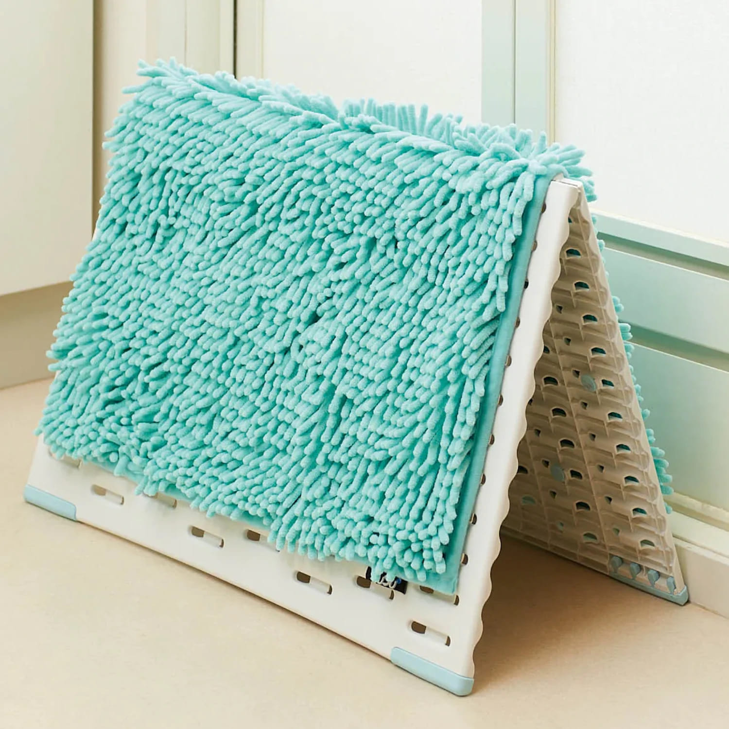 毎日使うバスマットを、さらっと干せるボードすのこのようにメッシュ状になった樹脂製で、ぬれたバスマットで床が濡れるのを防ぎます軽くて扱いやすく、つまずきにくい薄型設計もポイント底の部分には、すべりにくい加工も施されていますバスマットを干すときは、山形に立てるだけ空気に触れる部分が多いので、ジメジメしたバスマットも、比較的早く乾かすことができます