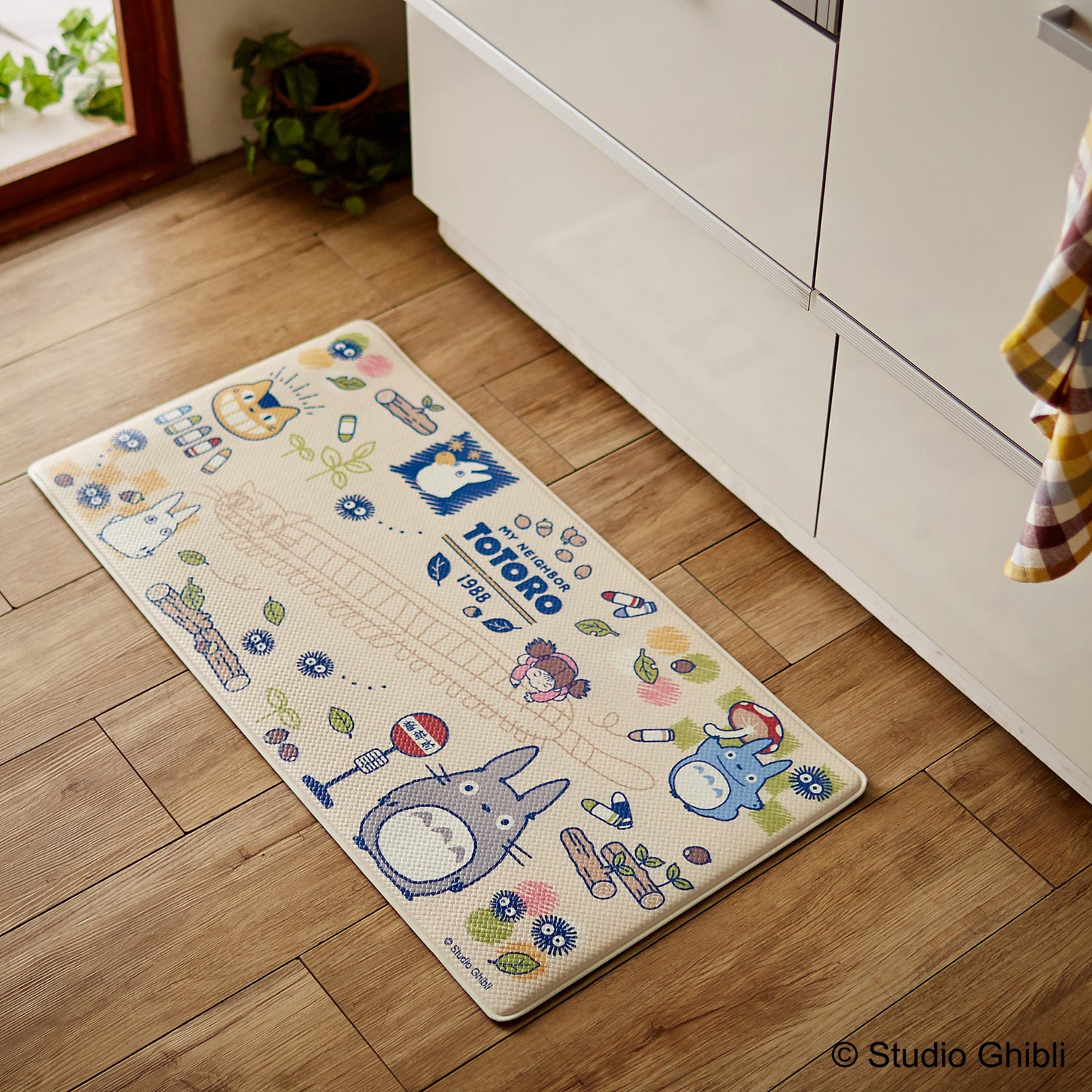 キッチンの足元が明るく映える、ジブリの人気キャラクターをデザイン表面がつるっとしたPVC素材なので、汚れてもサッと拭き取ってお手入れラクラク清潔に使いたいキッチンのために、抗菌・防カビ加工をほどこしていますお好きなキャラクターと、ぴったりのサイズをお選びください